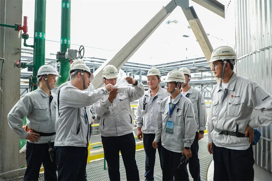 在双酚A装置建设及投产过程中,没有现成经验可学,唯一可用的只有专利商提供的全英文资料。为实现顺利开车,公司技术骨干们率先“啃”起了资料,熟练掌握开停车流程,认真梳理装置运行参数。许多员工的操作手册被翻得卷了页,每页PID和工艺物料流程图(PFD)都被密密麻麻的圈画批注填满。大家还深度参与装置的PSSR(开车前安全检查)、吹扫置换、设备调试、水联运等工作,最终使系统内部干干净净,员工操作驾轻就熟。