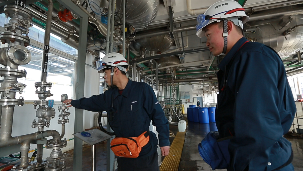 正月初五早上7时多,晨雾还未散开,海湾精化染料三厂值班长孙璐飞就已到岗,穿好工作服、戴好安全帽,开始了一天的工作。