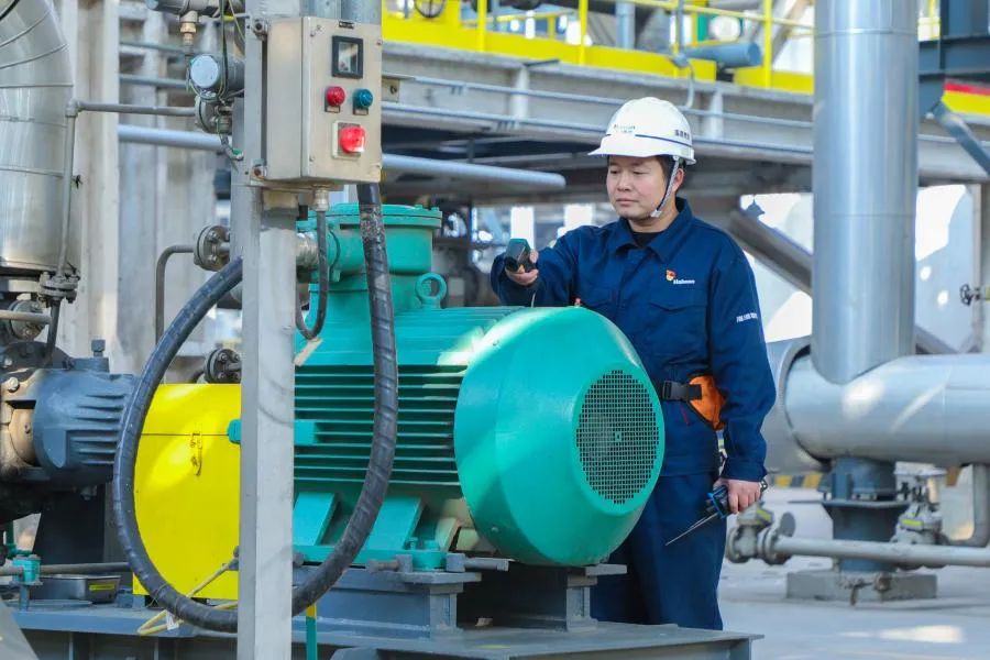 盛夏时节,走进海湾精化化工一厂车间,在醋酸裂解炉设备前,工段长乔晓刚手握电子巡检设备,时不时俯下身子检测设备的运行状态。“高温天气,我们必须对设备运行状态进行跟踪观察,随时掌握生产情况。”乔晓刚介绍道。