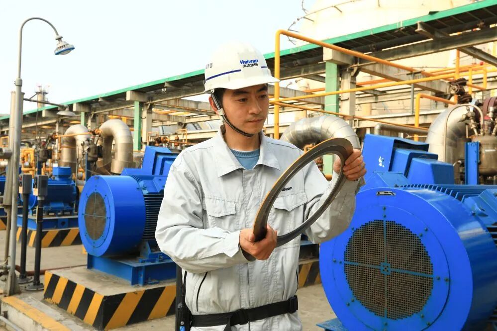 为护航项目高效运转与产能提升,作为“项目运行保障专班”主要责任人的杨华联,带领班组成员对聚合釜搅拌器、高低压压缩机和离心机等核心设备实施全天巡检,全面监测设备温度、压力、转速等关键参数。“项目开车阶段很顺利,但我们更得绷紧安全这根弦,特别是在节日期间,更得打起十二分注意!”杨华联这样叮嘱每一位团队成员。