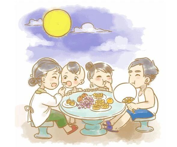 家人团坐,分吃月饼,共赏明月