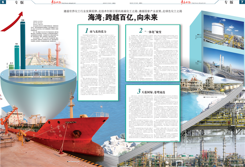 这一切,得益于自2010年开始的变革。借环保搬迁契机,海湾集团立足世界化工发展规律和国家产业政策谋划未来道路,实施现代化工园区集群化发展,培育前港后厂模式,走高端化、绿色发展之路。