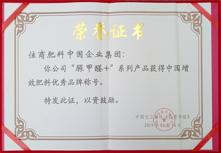 11月份,在中国磷复会大会上,青岛碱业住商肥料(青岛)“脲甲醛+”系列产品,获得了中国增效肥料优秀品牌荣誉称号。近年来,碱业住商肥料从单一的脲醛复合肥料,到“脲甲醛+”、“掺混肥料+脲甲醛”、高端水溶肥料、微生物肥料、土壤调理剂,最终获得广大农户的肯定,“脲甲醛+”系列产品在广袤的土地上,结出丰硕之果,企业探索出了一条适合复合肥创新发展之路。