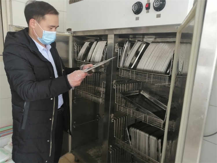 他对餐厅人员进行分组分工,明确职责,出菜后第一时间装盒,然后按照规划好的路线送餐。每天都会准点将热乎乎、香喷喷的饭菜送到职工手中。对于回收的餐具,则按照“先刷后煮再消毒”的操作流程进行,每天消毒工作完成后,已是下午15时了,但邢文威的工作还未结束,他还要为各项目提供后勤物资保障,如组织防控应急演练,为一直奋战在岗位的人员送去口罩、手套、方便面等物资。