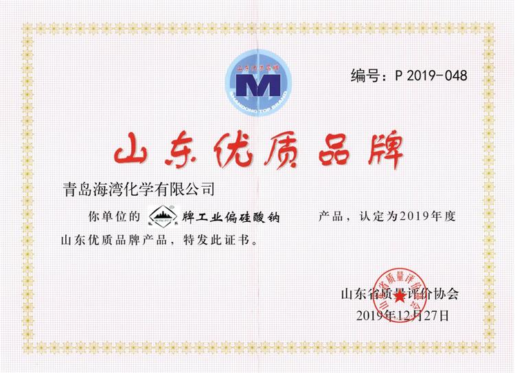 近日,海湾化学海晶牌烧碱产品、东岳牌工业偏硅酸钠产品荣获 2019年度山东省优质品牌。