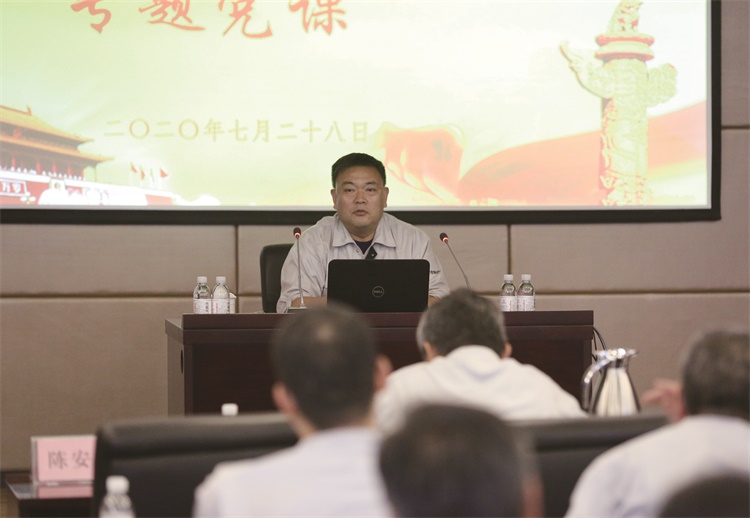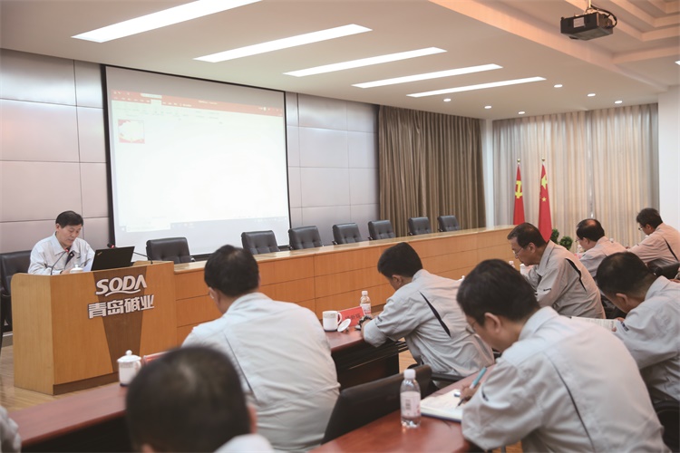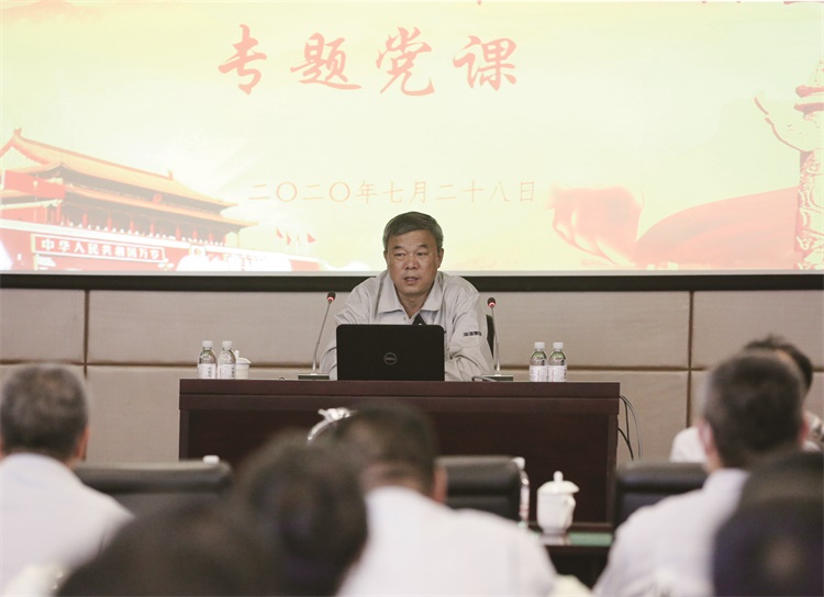 7月29日,集团副总经理王长安到碱业发展讲授“三述”专题党课,企业中层助理以上党员、管理人员参加学习。