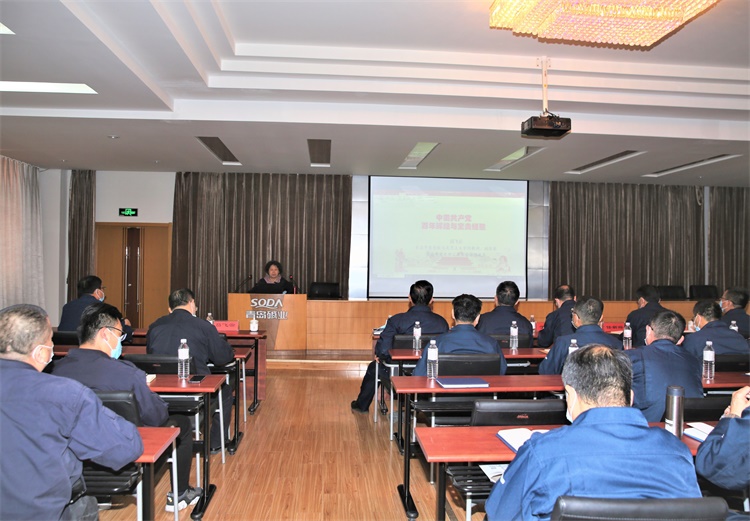 4月7日,碱业发展党委组织“党史学习教育”主题党课。党课聘请市委党校吕飞云教授进行专题授课,企业全体中层以上管理人员,党员、入党积极分子63人参与学习。