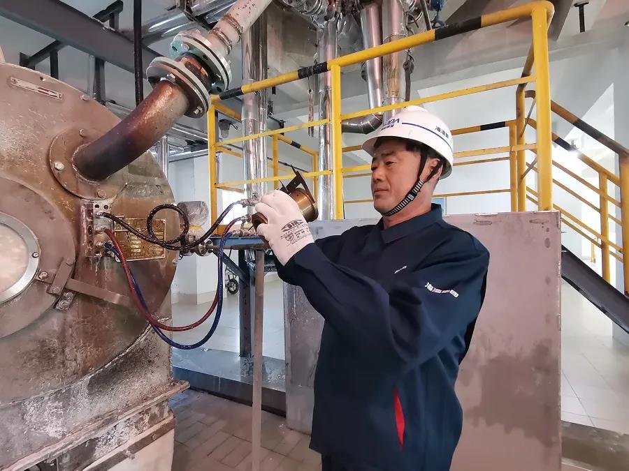 那一段时间,本来说话就很少的李福令,仿佛和设备较上了劲,不懂就学、不会就查,多方讨教、刨根问底。除了召集班组会议,平时大部分时间都是在现场。总而言之,不是硫酸钾、氯化钙,就是小苏打,只要锁定这三个区域,大家一定能第一时间找到他。